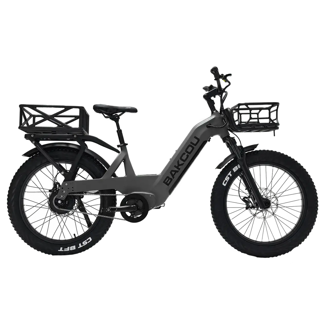 MOTOR: (2 SPEED INTERNAL) - RMG062A Internal Dual Speed Bafang 750W/1000W high-end rear hub with 85Nm of torque. Torque-sensing technology. ODP - Comprehensive ’On-Demand Programming' for all eBike classification selections. BATTERY: Integrated Battery 52V 20Ah (1040Wh) Lithium-Ion Battery with 52V/4Amp Smart Fast ChargerDUAL BATTERY OPTION: An extra 20Ah battery option is available to extend your distance. This second battery mounts directly to your rear rack with fully integrated modular rack and Quick Release system. This second battery plugs into your bike system independently and works in conjunction with the integrated 20Ah for a total of 40Ah (2080Wh) capacity delivering unmatched range and power!DISPLAY: Integrated Stem LCD Display with ODP SystemSTEM: Adjustable Stem PositionBRAKES: Powerful Tektro HD E725 Quad Piston Hydraulic Brakes, 203mm Front & Rear RotorFRONT SUSPENSION: 100mm Helical Spring Front Fork FRAME: Air-Craft 6061 Aluminum Alloy SIZE: 16" (Stand Over Height 16")FRAME DESIGN: Full Step-Through Hardtail Frame design with no top tube is the most easily mountable and controllable frame that Bakcou has ever built. Designed with Hunters in mind now you no longer need to swing your leg over your loaded rear rack or with your heavy pack on your back. With the SD simply step through your frame between the handlebars and seat for position and control and away you go!THROTTLE: Removable Thumb ThrottleTIRES: CST BFT 24" x 4"GEARING: Dual Internal Motor Gears with single chainring & cog. 40T Front Chainring & 22T Rear Cog. Dual-Speed Motor with no DerailleurSTEERING: PROMAX Wide 760mm Handlebars for Greater Stability with ergonomic locking handlebar gripsLOAD CAPACITY: 300lbs / 159kgSEAT POST: Shock Absorbing Suspension Seat PostPEDALS : Aggressive Skid-Proof Wide Stance PedalsFRAME WEIGHT: 67lbs / 30.39 kgINTEGRATED BATTERY WEIGHT: 10 lbs / 4.5 kg