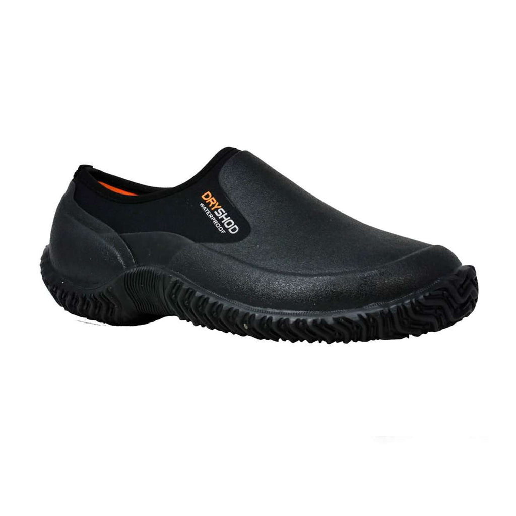 Looking for protection without the bulk of a tall boot? The Dryshod men's Legend Camp Shoe - black has arrived! Slip into your favourite slippers with this all-purpose shoe that combines comfort and durability with a calendared outsole and steel shank for extra arch support.
